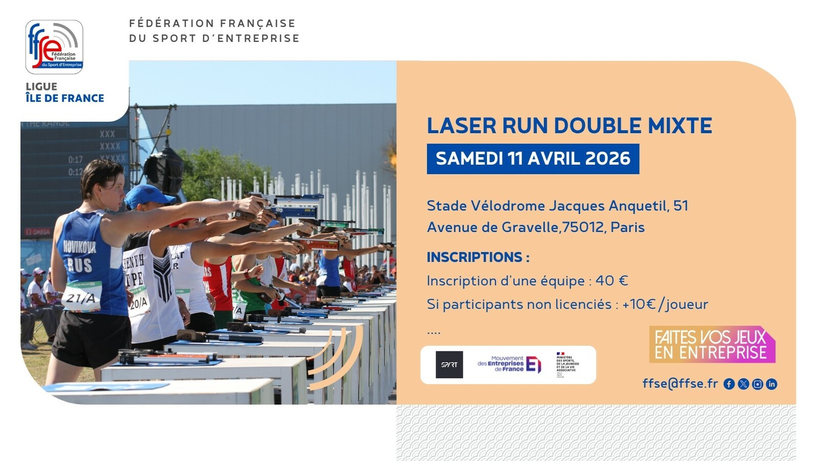 La Ligue Ile-de-France du Sport d'Entreprise en partenariat avec Penta Paris Est, vous donne rendez-vous le samedi 11 avril 2026 pour un Faites vos Jeux laser run !