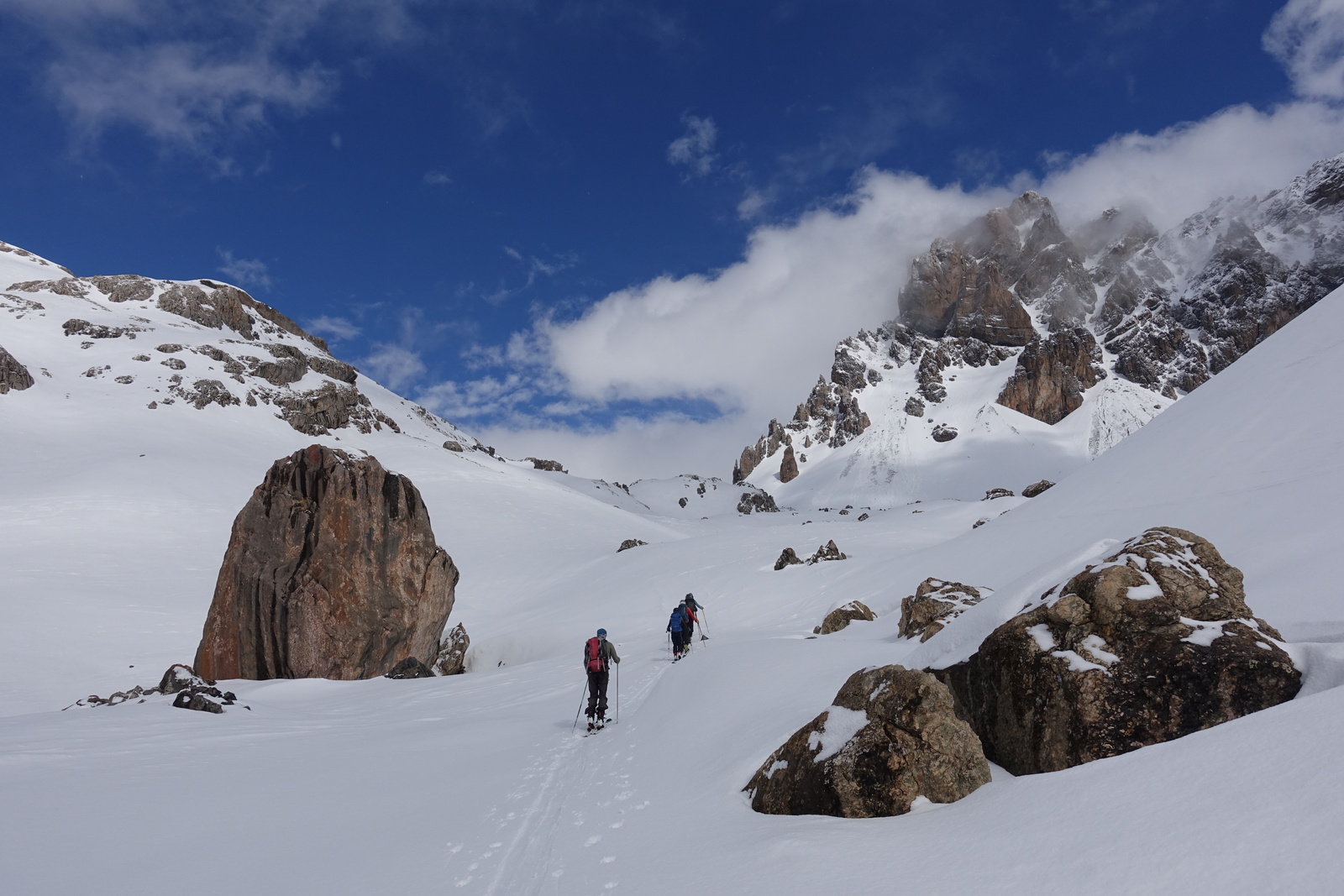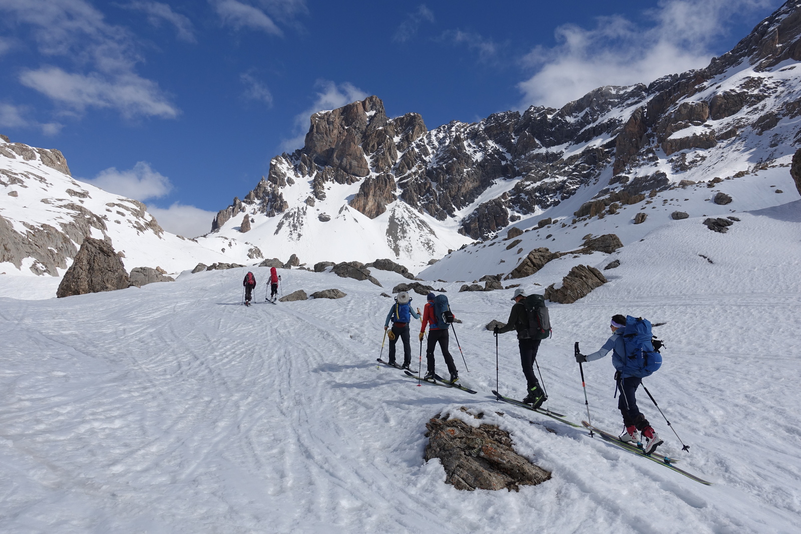 L’année dernière aucun groupe n’avait pu se constituer quel que soit le programme et les dates proposés. Cette année encore, la section a connu les mêmes difficultés. Trois membres faisant partie du noyau historique de la section (Frédo, Samuel et Jérôme) sont tout de même partis sur un programme de l’agence Allibert qui offrait un bon compromis : il s’agissait de découvrir la Haute Ubaye à partir de trois refuges (Fouillouse, Chambeyron et Maljasset) avec Paul Bonhomme, guide de haute montagne très connu pour son expertise en pentes très raides (son max : 67° !!) mais aussi pour sa grande connaissance de la montagne.
